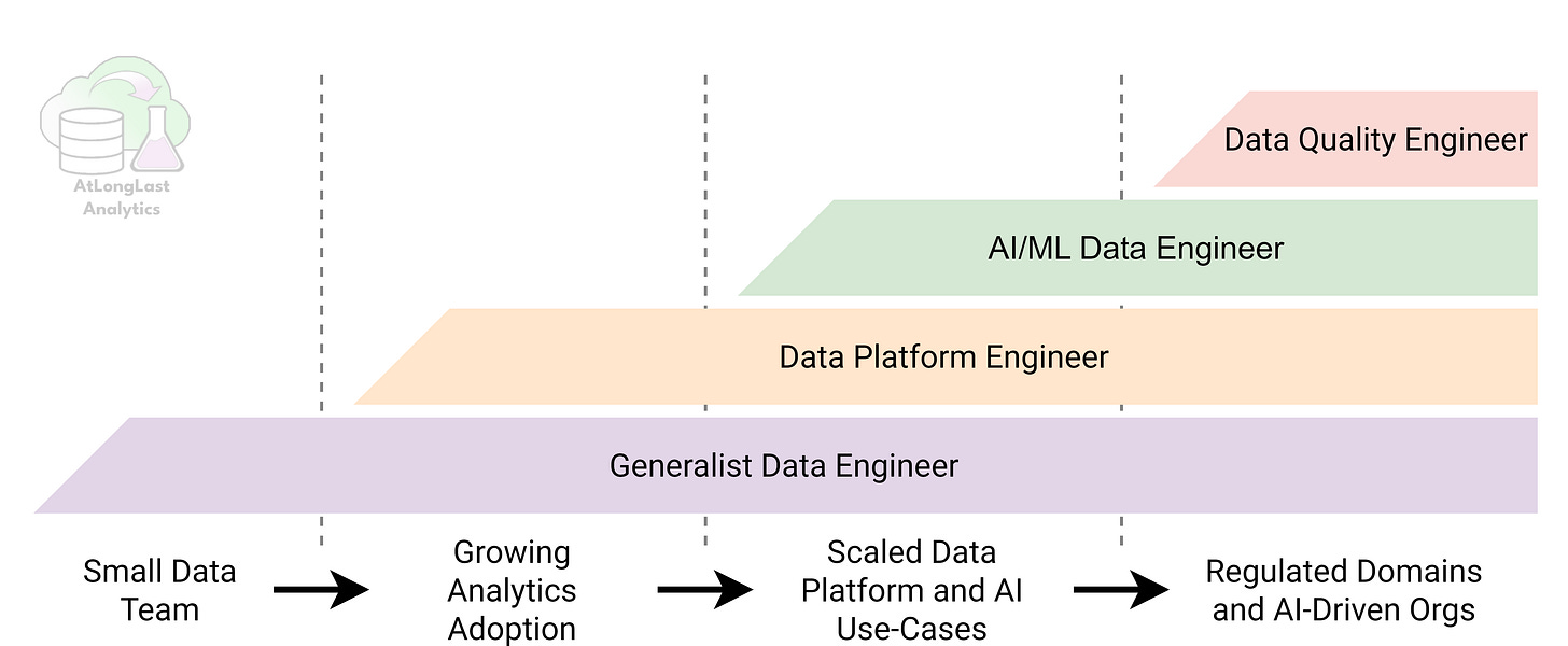 Data engineering in 2026 is no longer a single job title. Over the last two decades it has evolved into specialized roles that emerge as an organization’s data maturity grows. Now we have distinct archetypes, each optimized for different stages of scale, complexity, and risk that data teams go through.