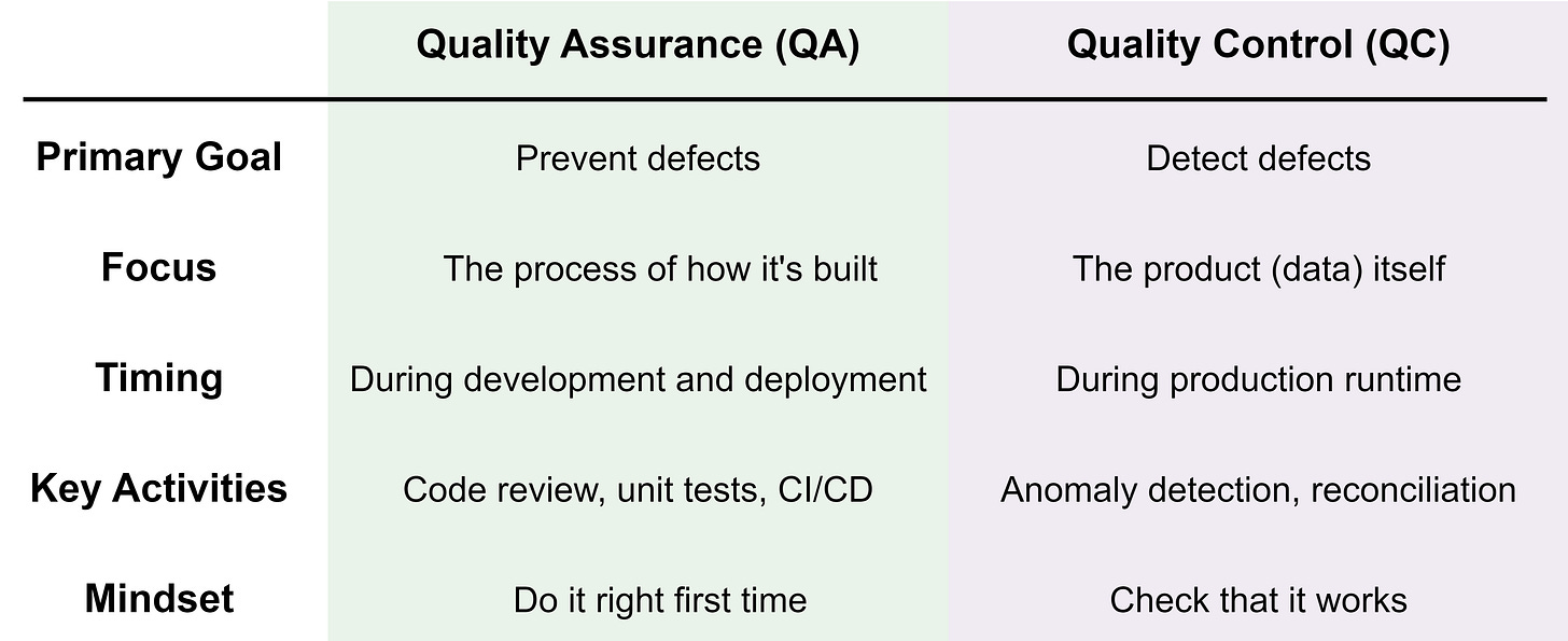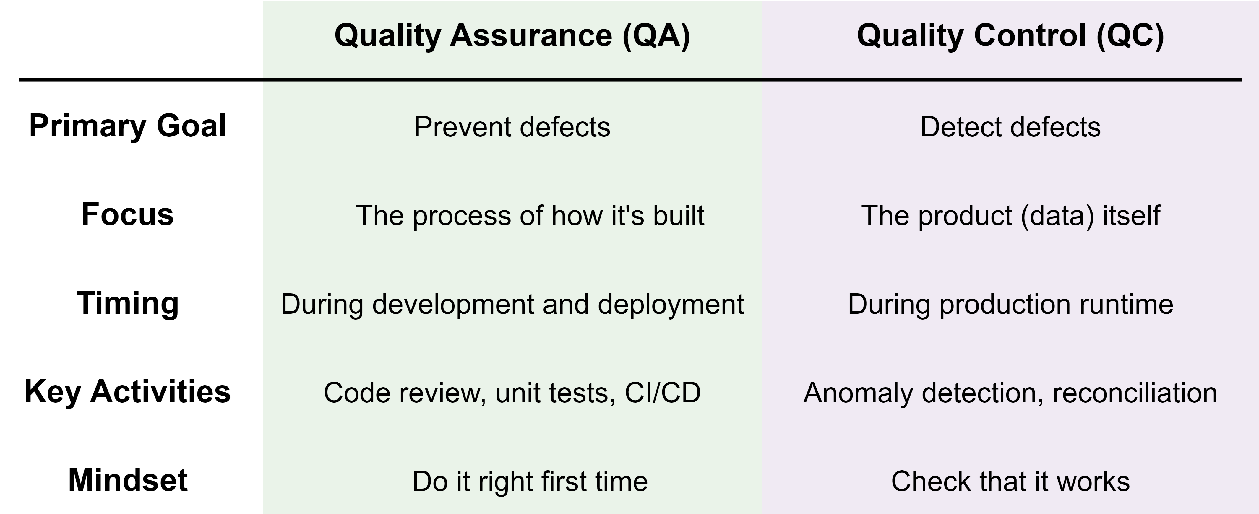 Reliable data isn’t a byproduct of good intentions or talented engineers, it’s the result of intentional habits. Quality Assurance ensures pipelines are built with rigor, while Quality Control ensures that the data they produce is accurate and trustworthy.